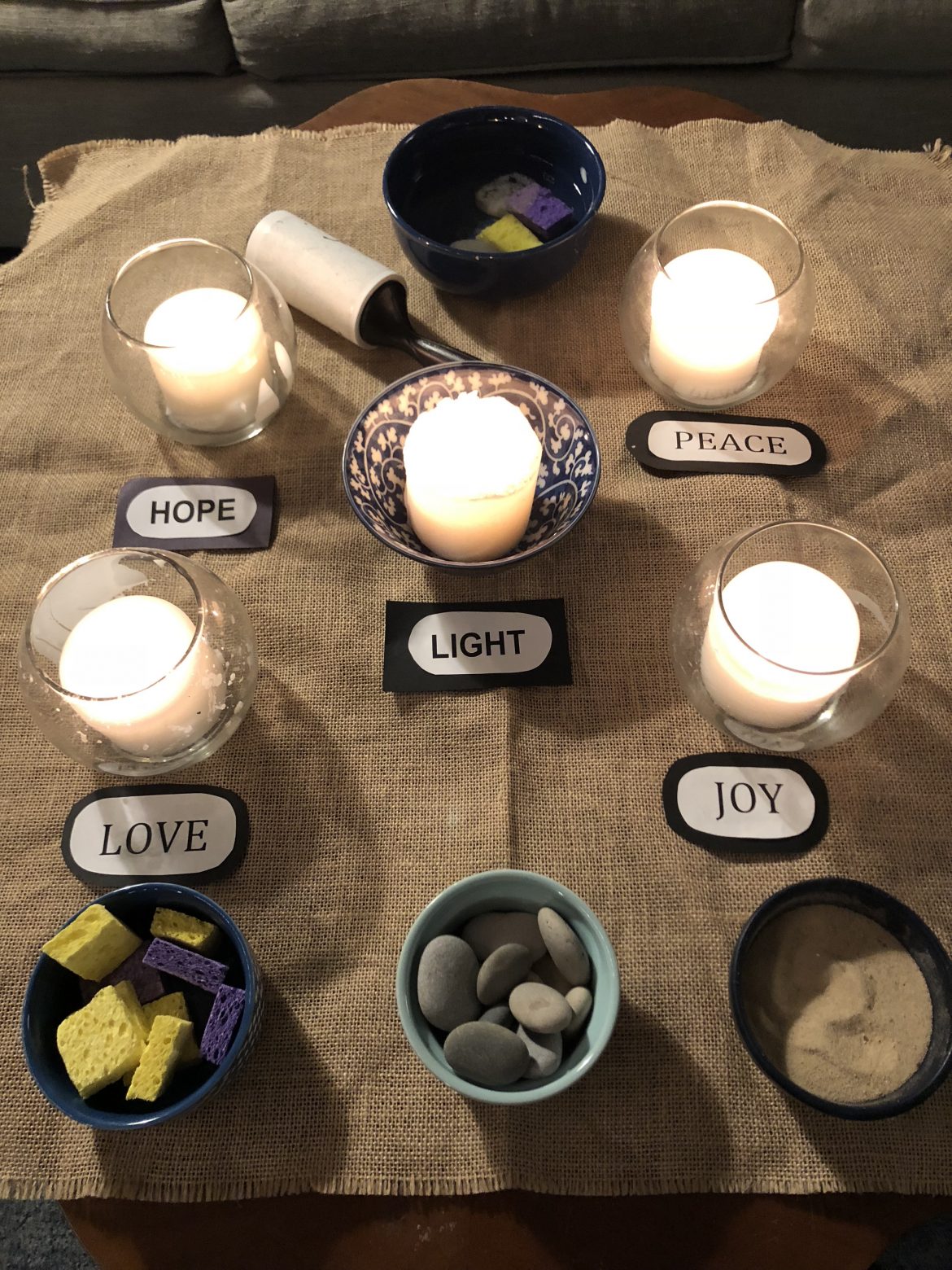 Lent begins this year on February 17th, 2021 on Ash Wednesday. So we have a month to consider how we want to fall more in love with Jesus over the forty days of the Lenten season. I think we need to consider just where we are and how we are doing spiritually as we begin the journey of Lent. Here is a prayer station I like to use as we begin our Lenten Journey. This station can also be a a meditation/reflection to do as you consider where you are on your journey with Jesus today or any time. It can be a refection you do as a family around a centerpiece at dinner, or as a closing at your small group or youth group. It also could be created for your entire church community. The elements, the bowls of symbols, could be up front and as people came up for communion, they could put their symbols into a large bowl of water before receiving the bread and wine. Or the station could be multiplied around the worship space so everyone could pray with the elements at the same time following a sermon or talk.