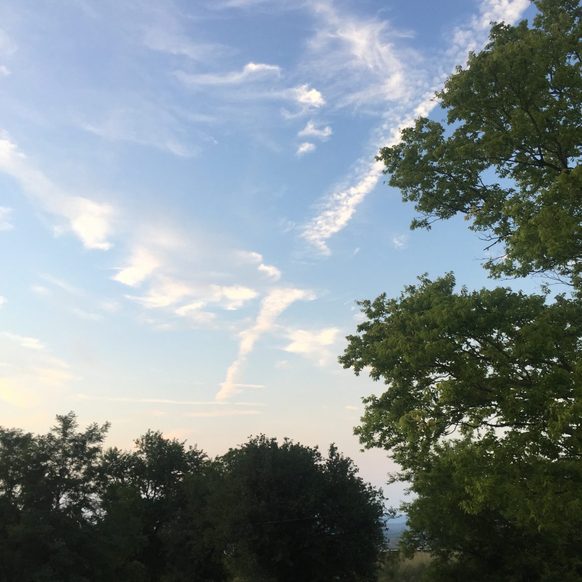Notice the weather, the clouds, the sky, the trees, plants, birds.