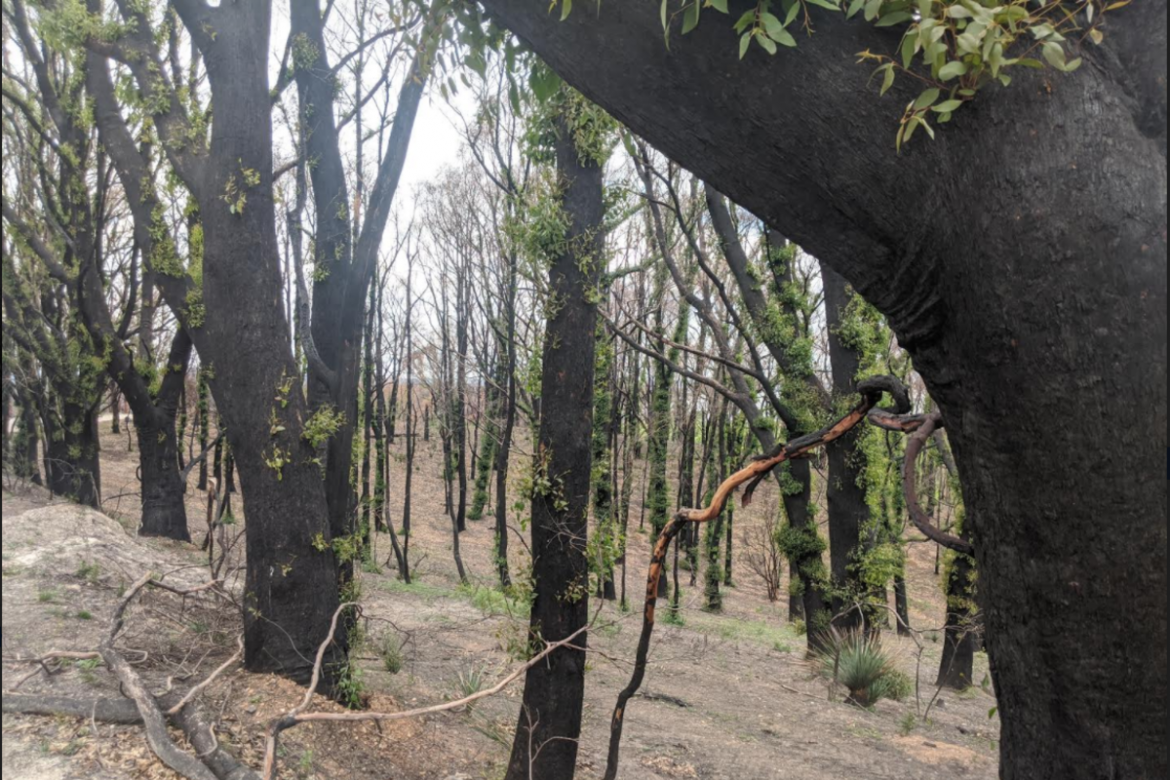 A month after the devastating Australian bush fires were extinguished, we visited the Adelaide hills. We stood on a hill overlooking a vineyard and saw the distinct line where the fire stopped just short of the vines. Beyond that line, the land was scorched. As we drove out of the hills, we went through the blackened zone. Just a couple of miles down the road, I called for our friend to stop the car so that I could get out and look. Here, just weeks after the fire, green was sprouting energetically from forests of charred trees. Life amidst devastation, beauty from ashes, hope from loss and despair. Life often incubates in the darkness until it is developed enough to see the light and be exposed. Seeds are hidden in the dirt, secret and unseen until they sprout and push through the dirt to unfurl their leaves to the sun. In the darkness of the womb, we grow slowly and intricately until we can survive the beauty and trauma of birth. Sometimes, when I am in the middle of grief or difficulty, it seems that all is dark, broken and dying. The darkness creeps at the edge of my soul, whispering that something is wrong, that I am alone. It can be hard to see what lies beyond the ashes. It takes faith to have the hope of newness and rebirth when we cannot see it for ourselves. In a recent difficult time, as I was sitting in silence, I got a picture in my mind. I was sitting in a dark room, with my legs crossed on the floor. As I sat there, God entered the room and sat facing me, crossed legged on the floor and placed hands on my knees. God said, “It’s okay. We can sit here together in the dark as long as you need to.” The good news is that God sits with us in the darkness, companions us through the unknown and uncertainty. When the time is right, the light will come, the darkness recede, the sprouts will emerge.…just like the scorched trees bursting forth in green. After all, this is the work that Jesus came to do: